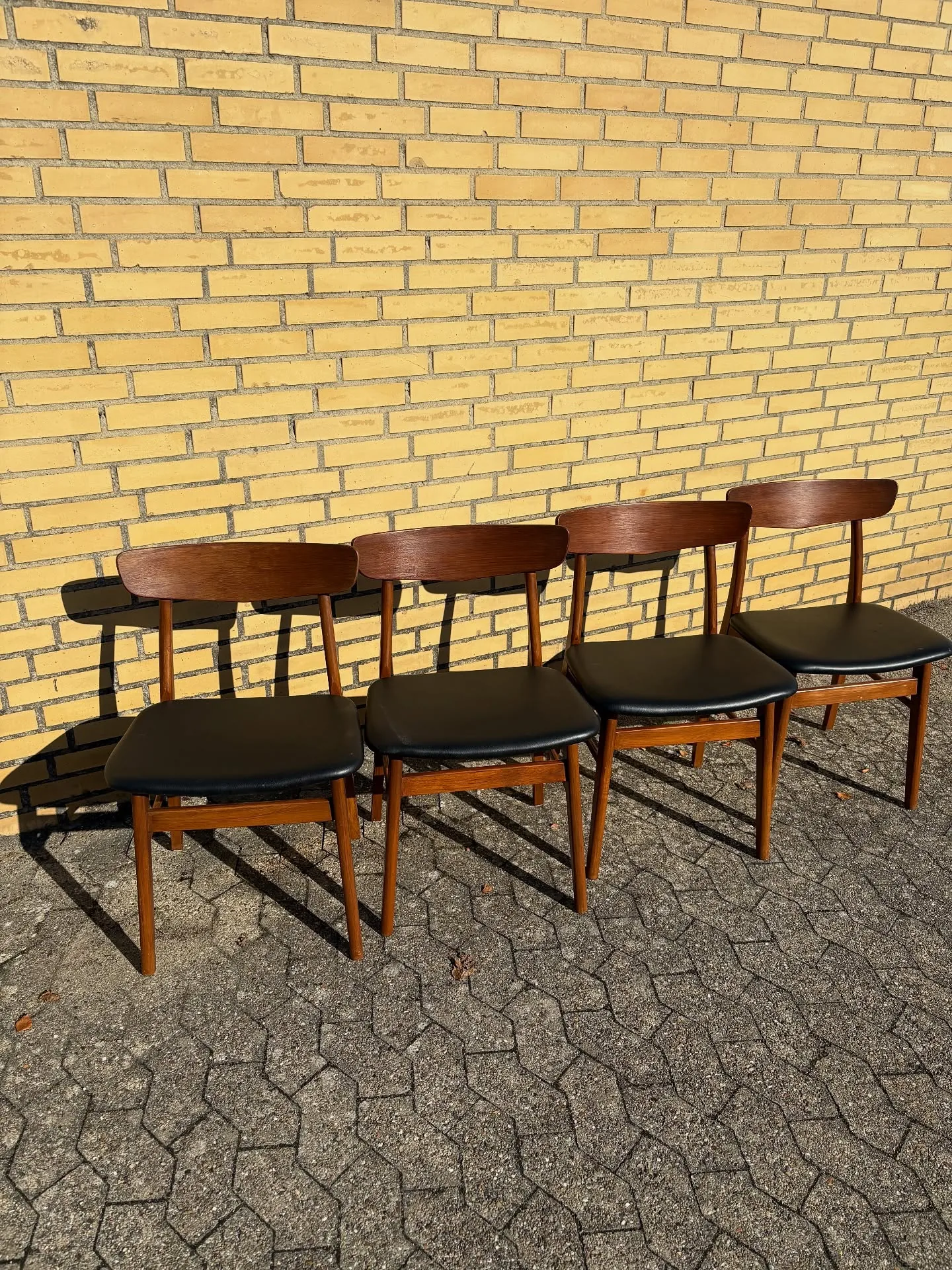 Farstrup stole Teak, betræk i sort skai. 4. Stk saml…