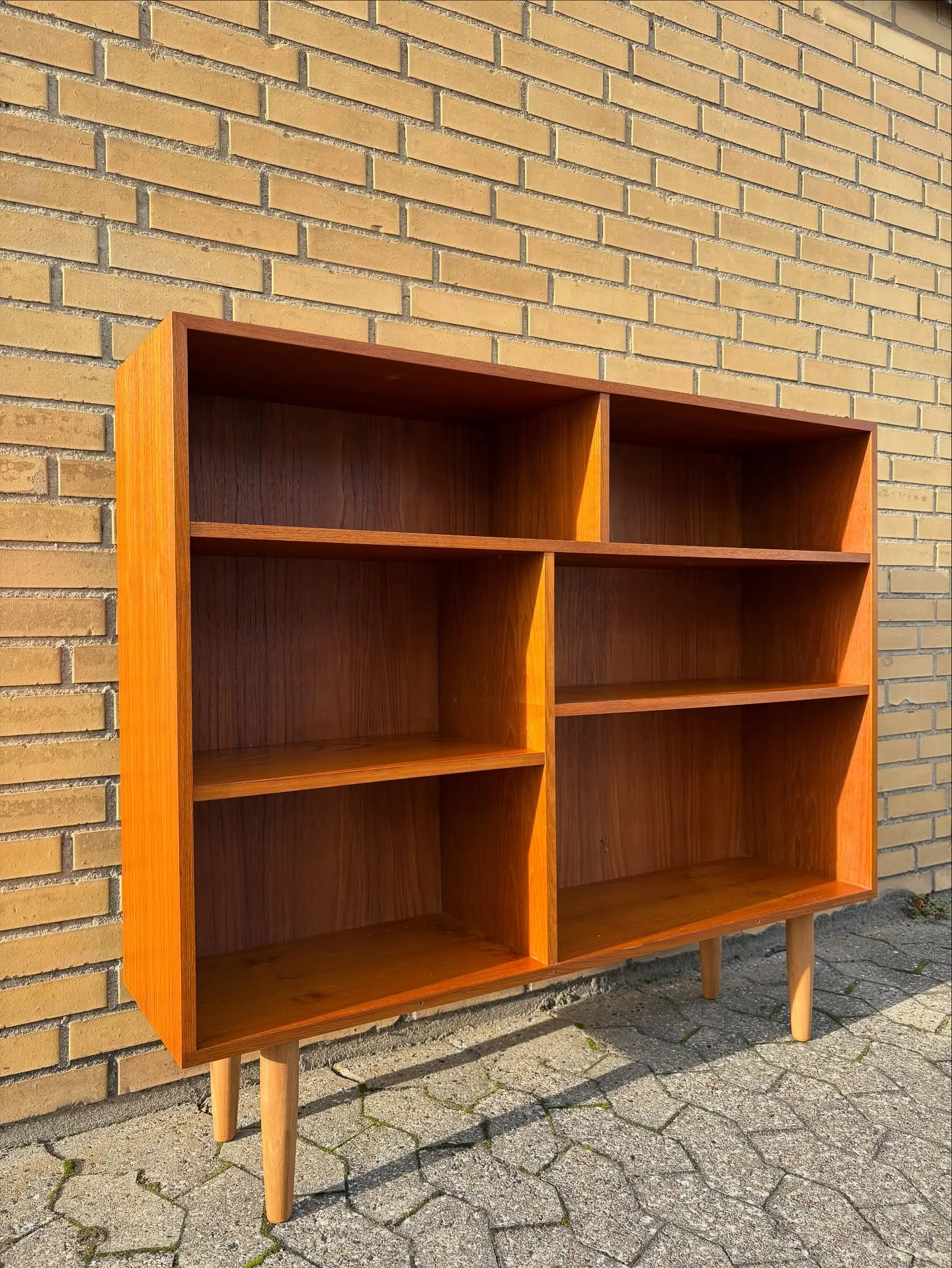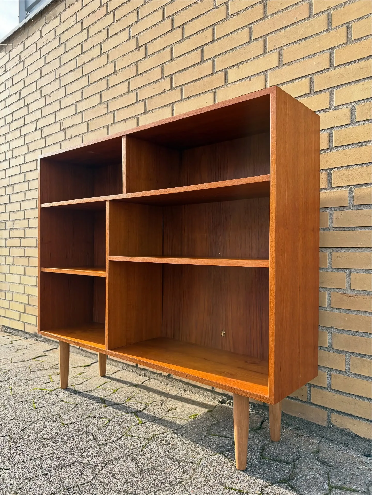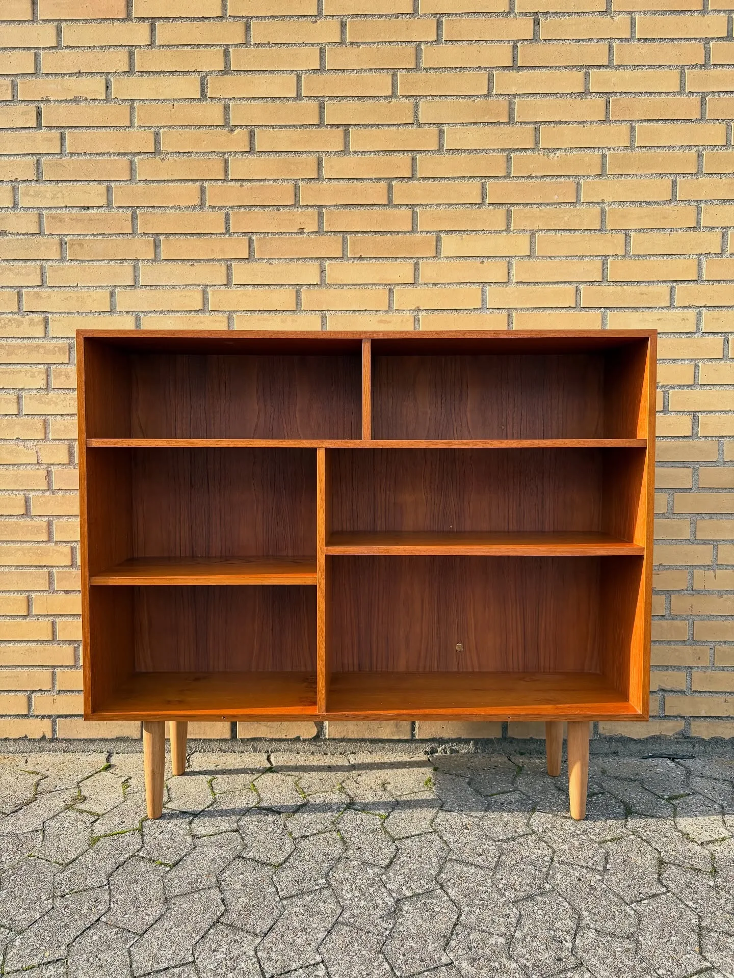 Teak bogreol. Dansk 60’erne. Monteret på runde tilspi…