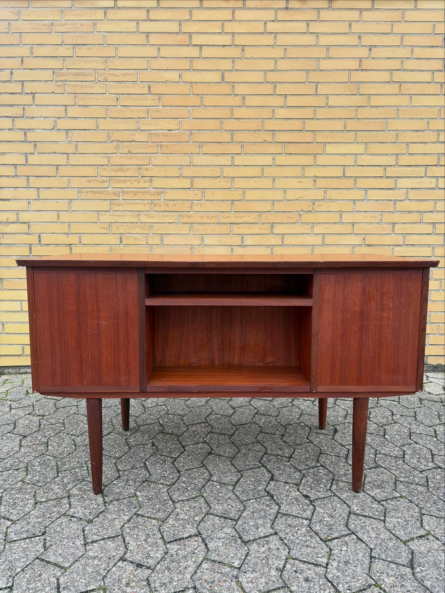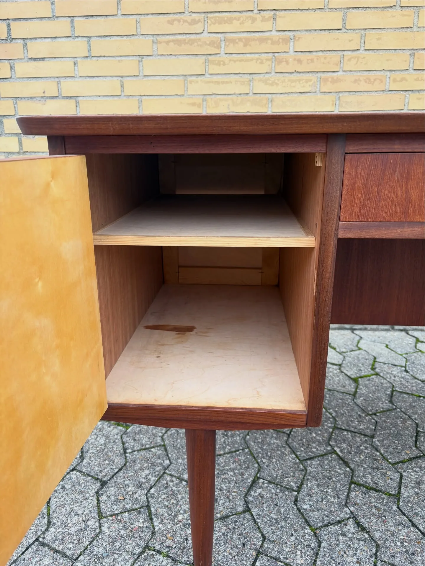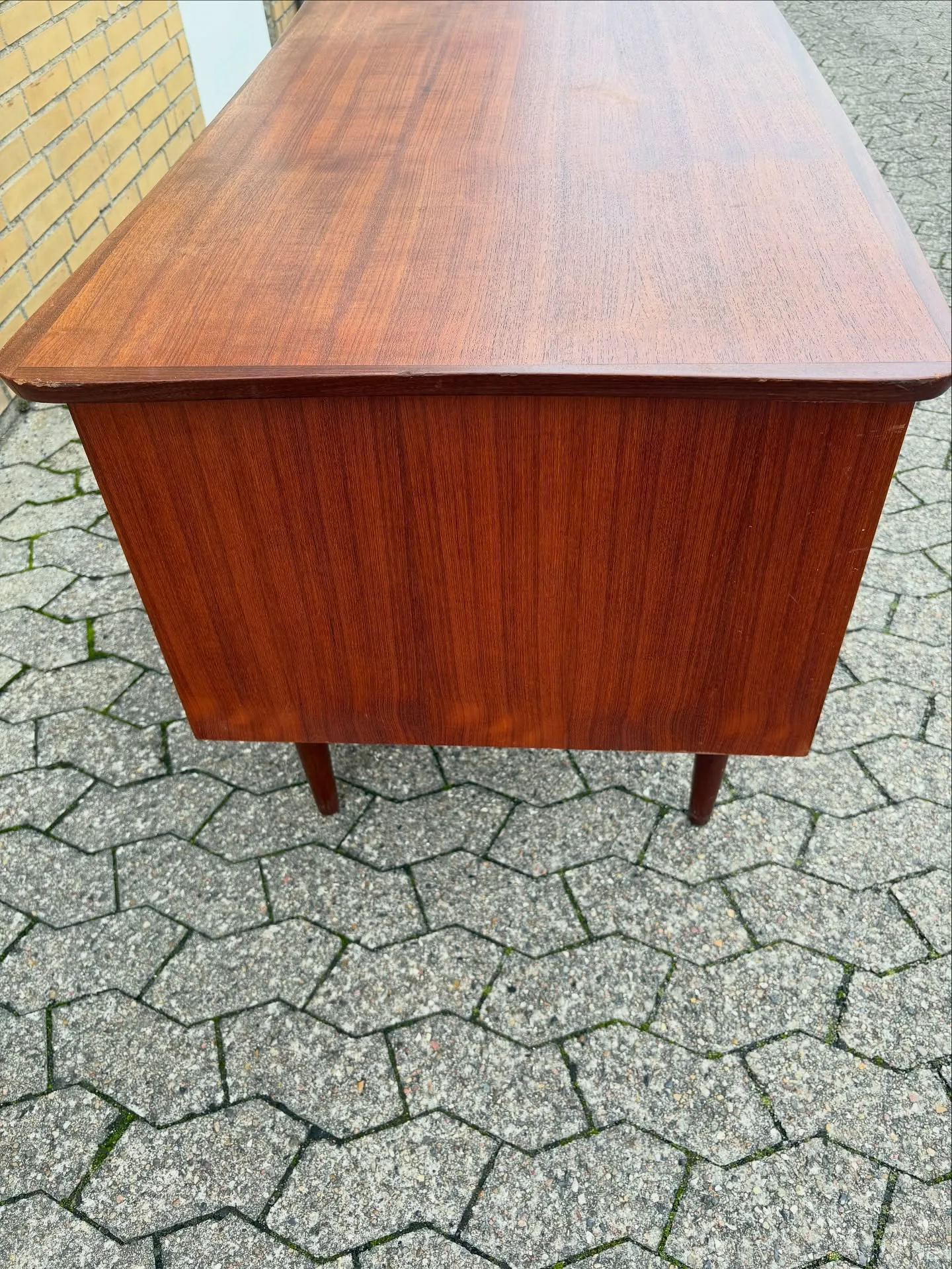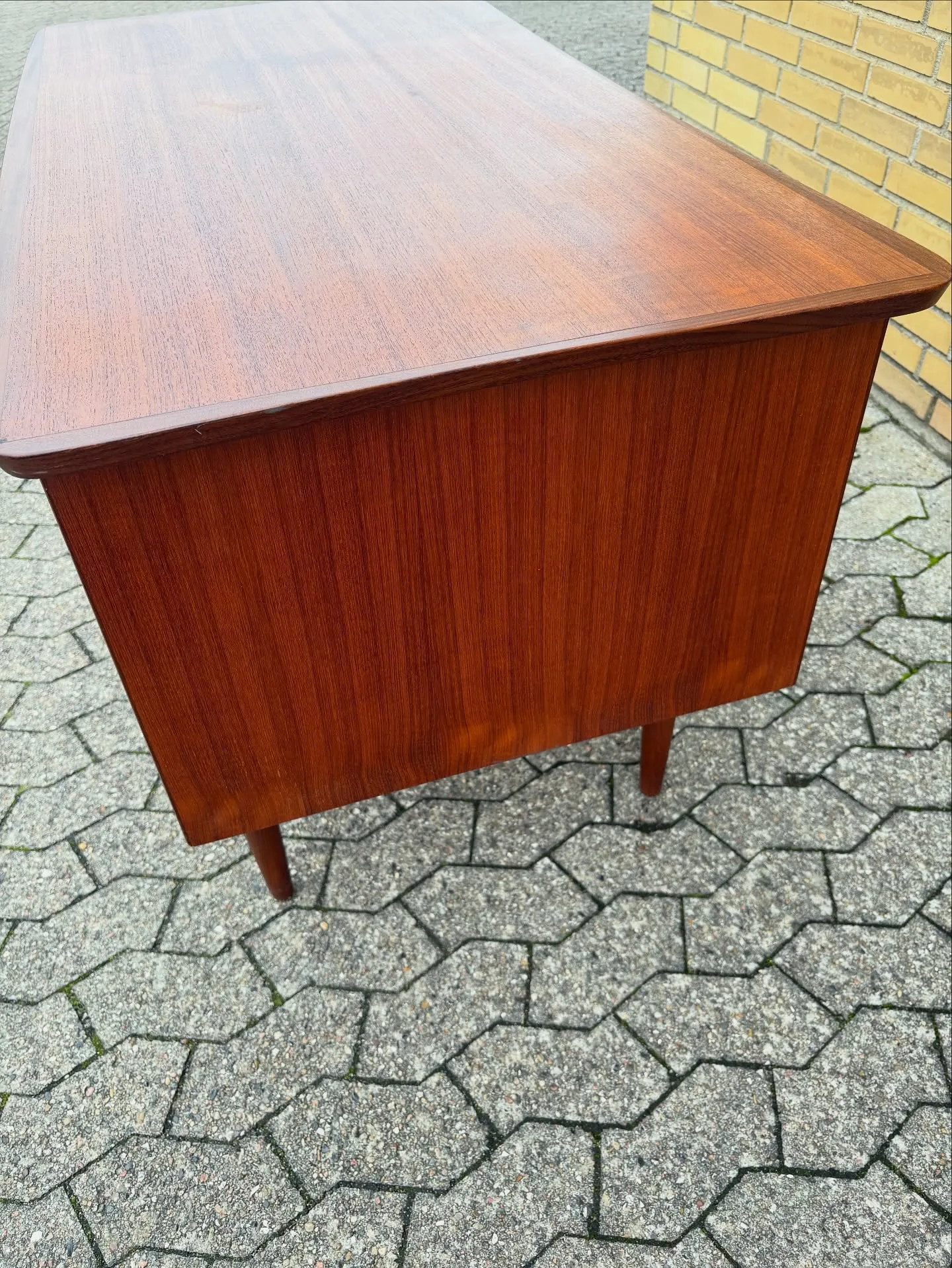Teak skrivebord Fritstående, front med 4 skuffer og …