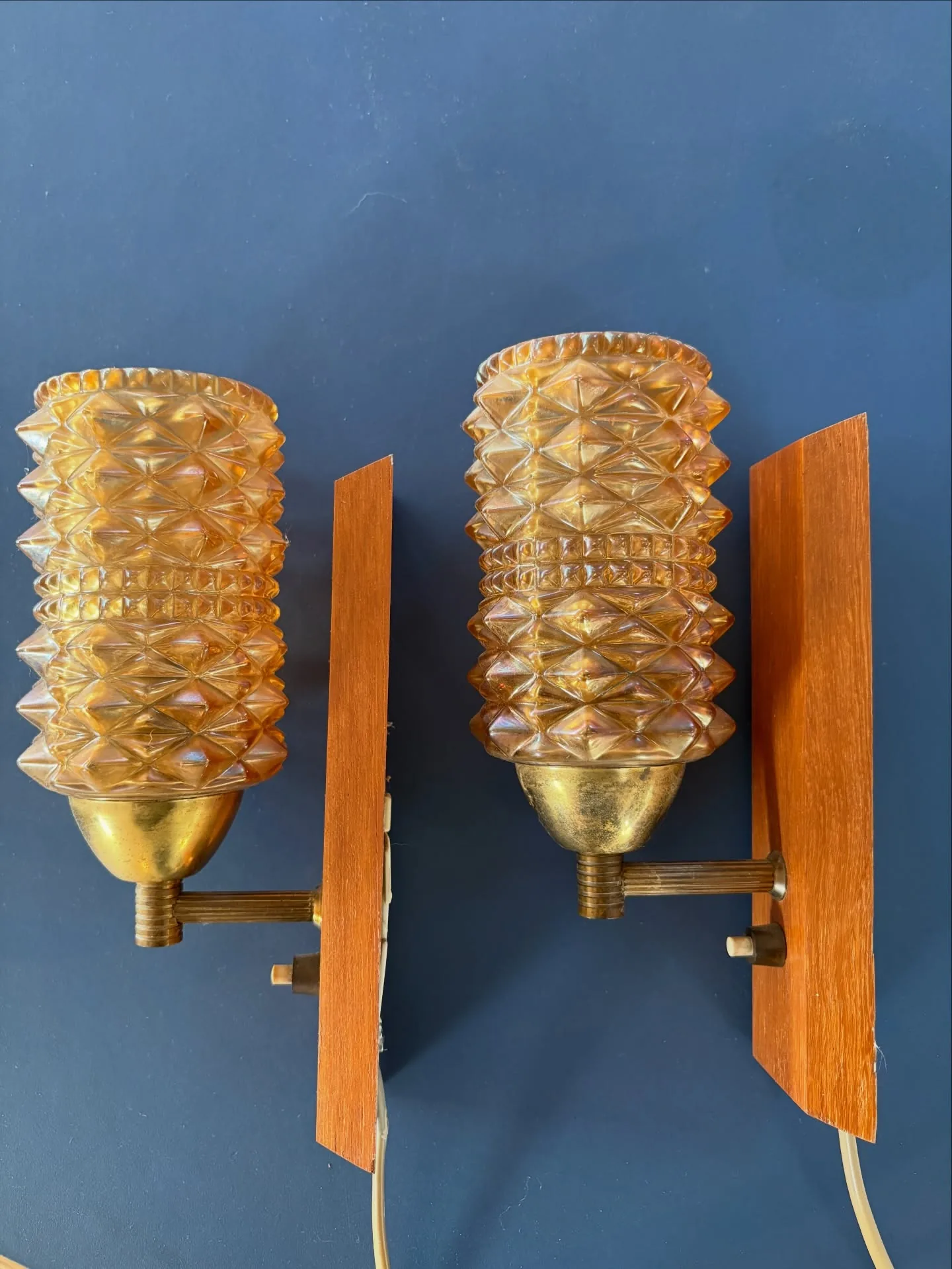 Væglamper Fint sæt lamper i teak, messing og glas, f…