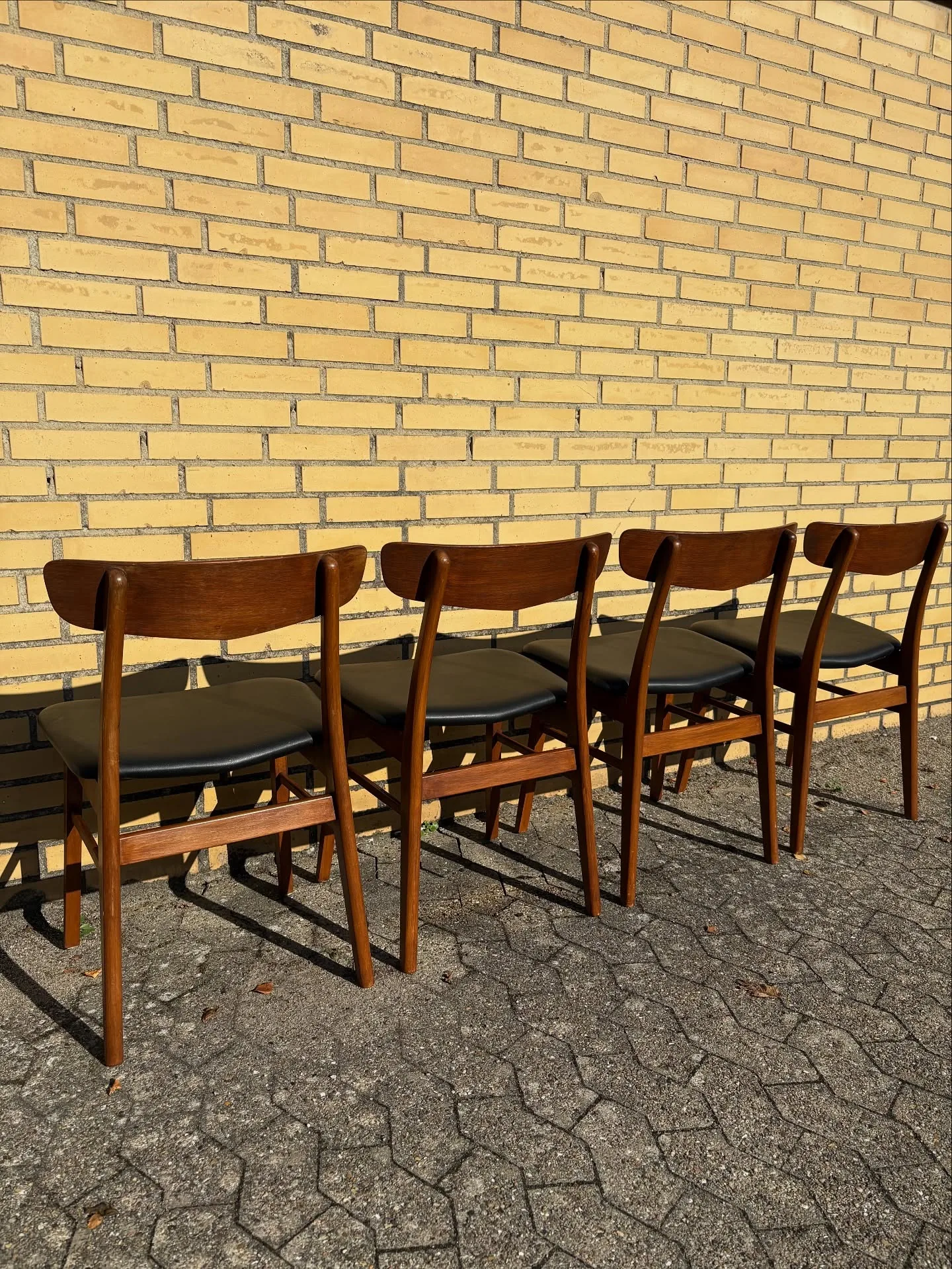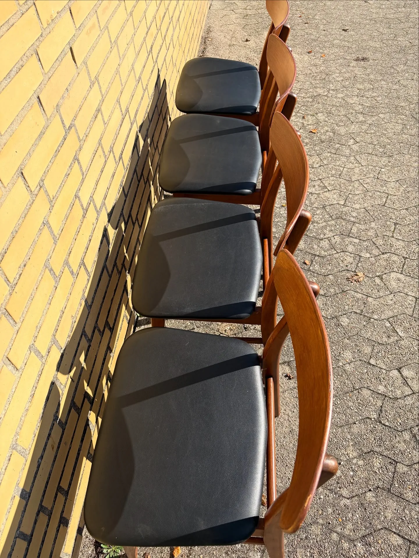 Farstrup stole Teak, betræk i sort skai. 4. Stk saml…
