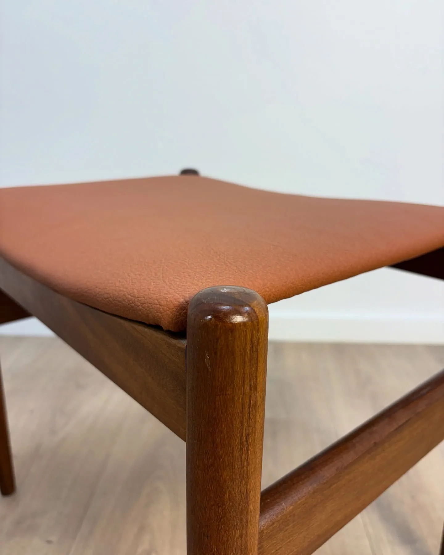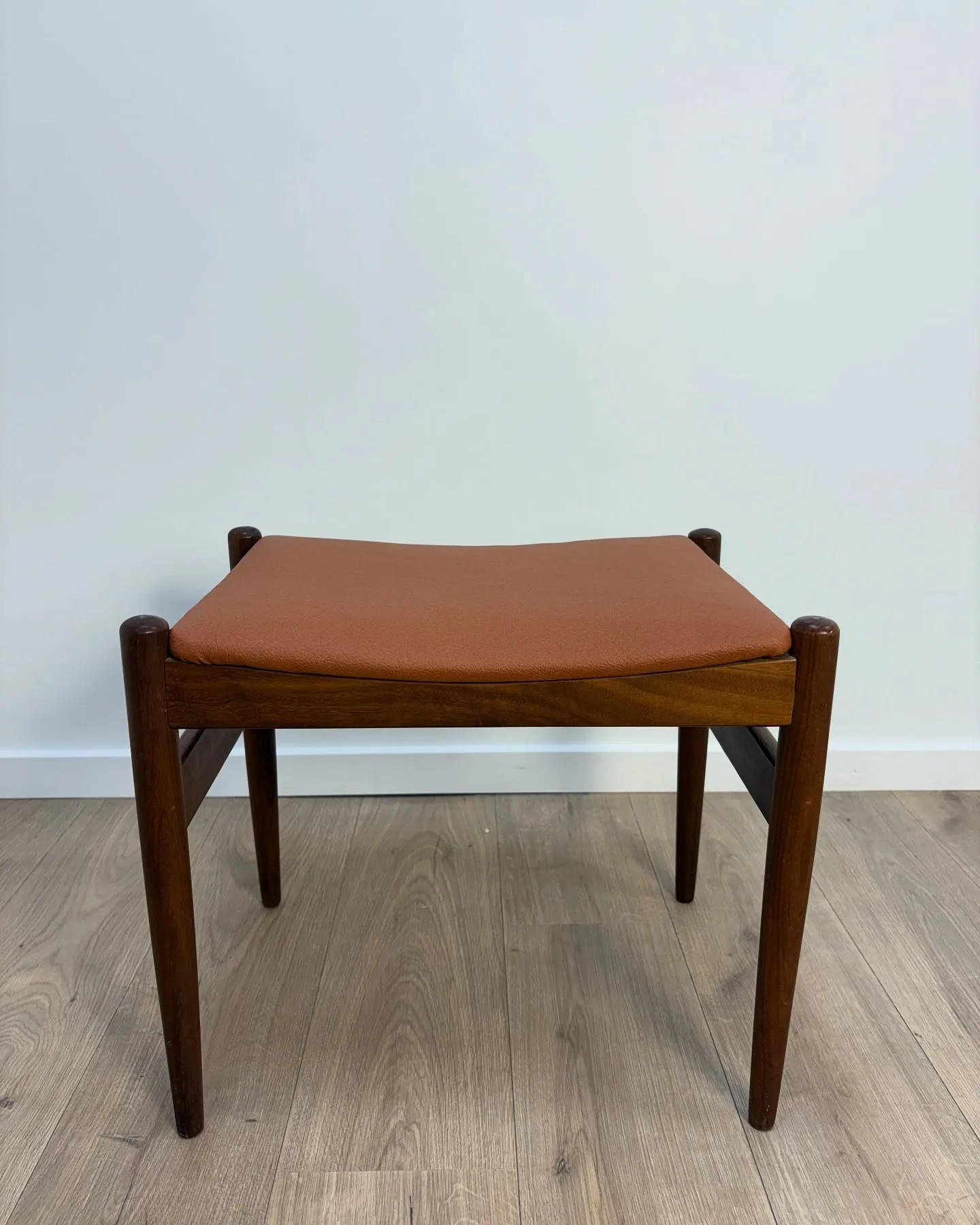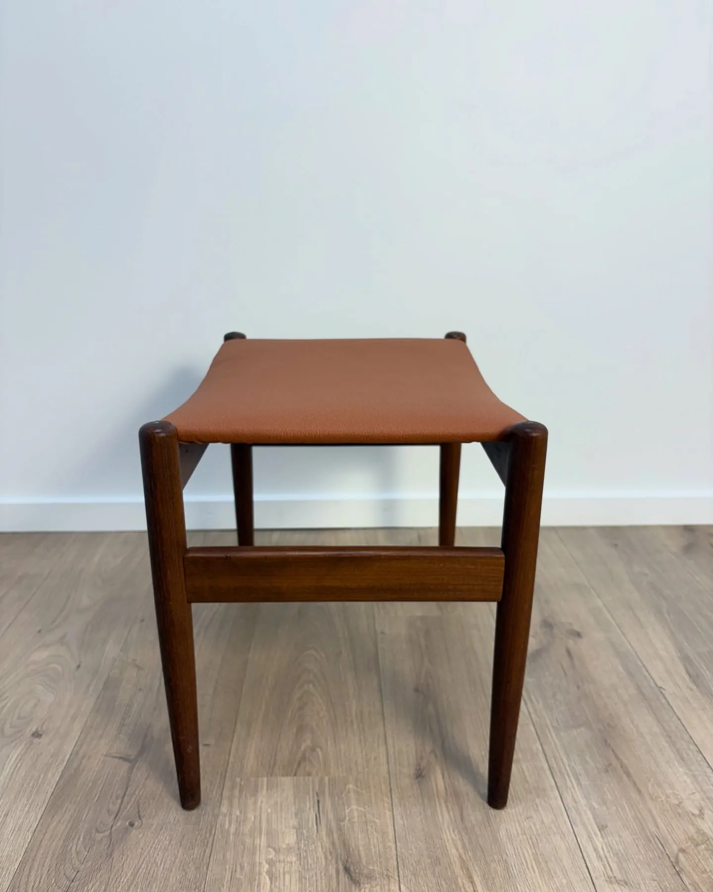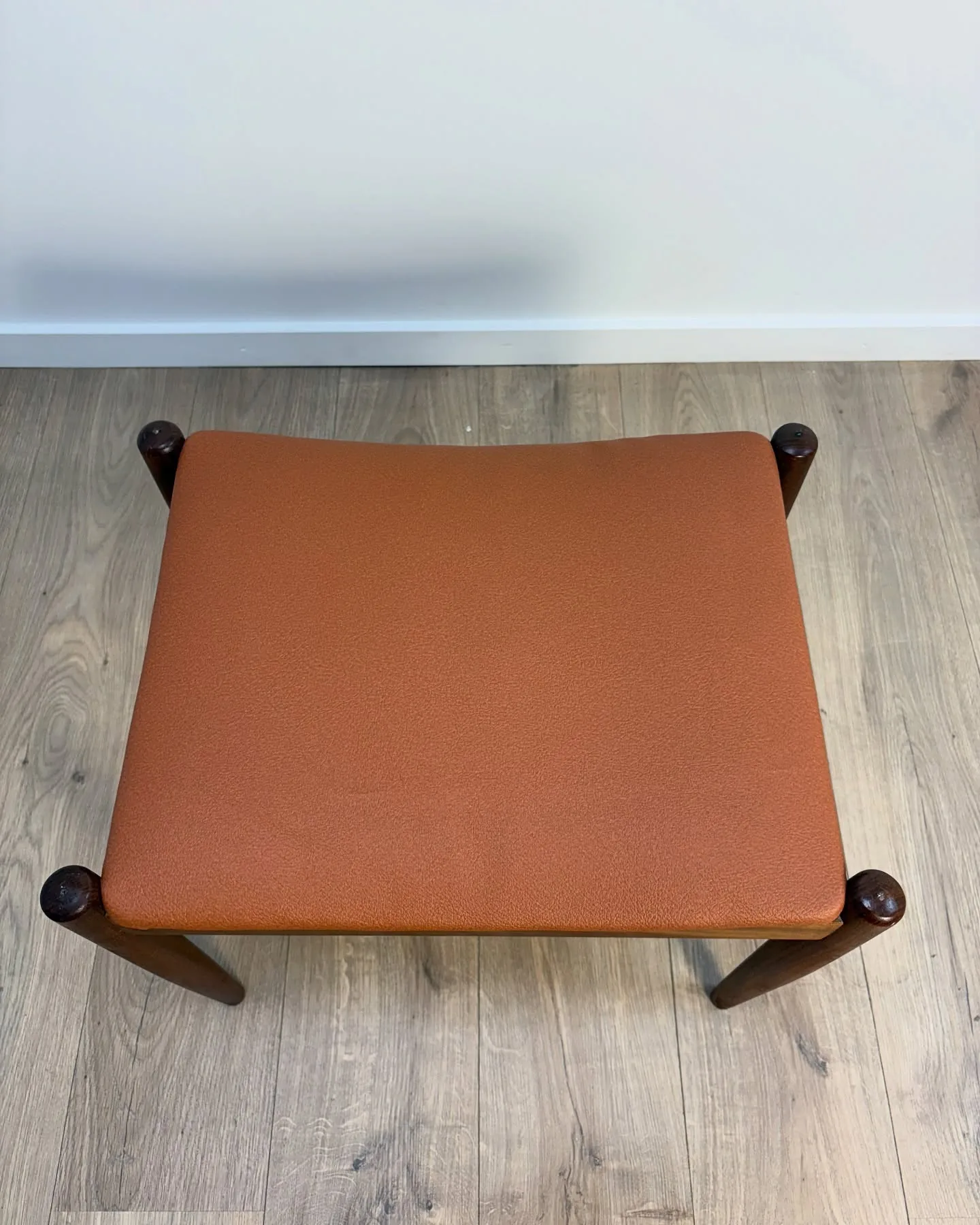 Spøttrup skammel Teak, betræk i cognac farvet skai. …