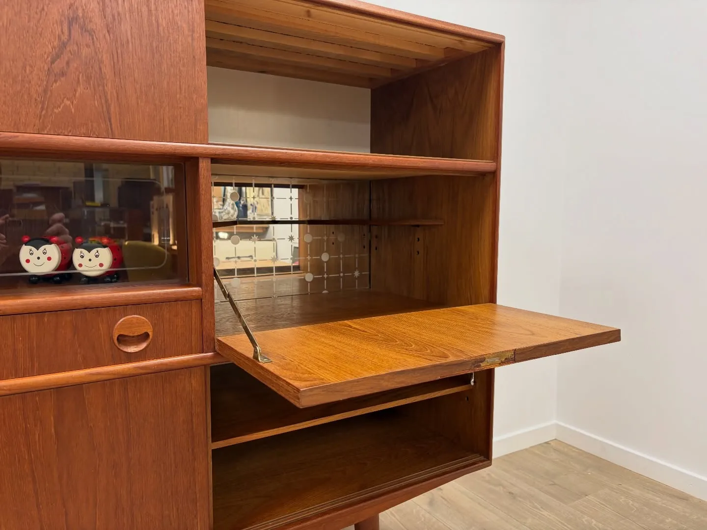 Teak skænk. Dansk 60’erne, masser af skydelåger, skuf…