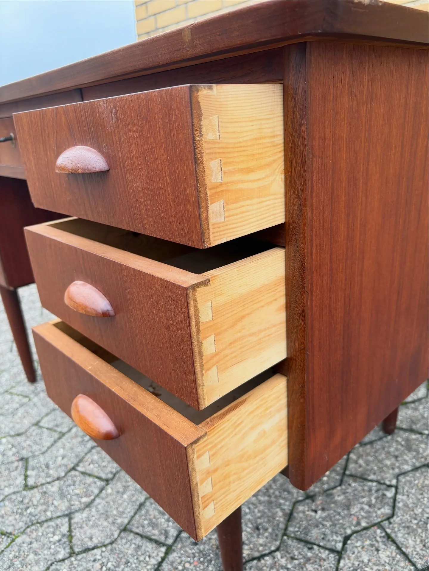 Teak skrivebord Fritstående, front med 4 skuffer og …